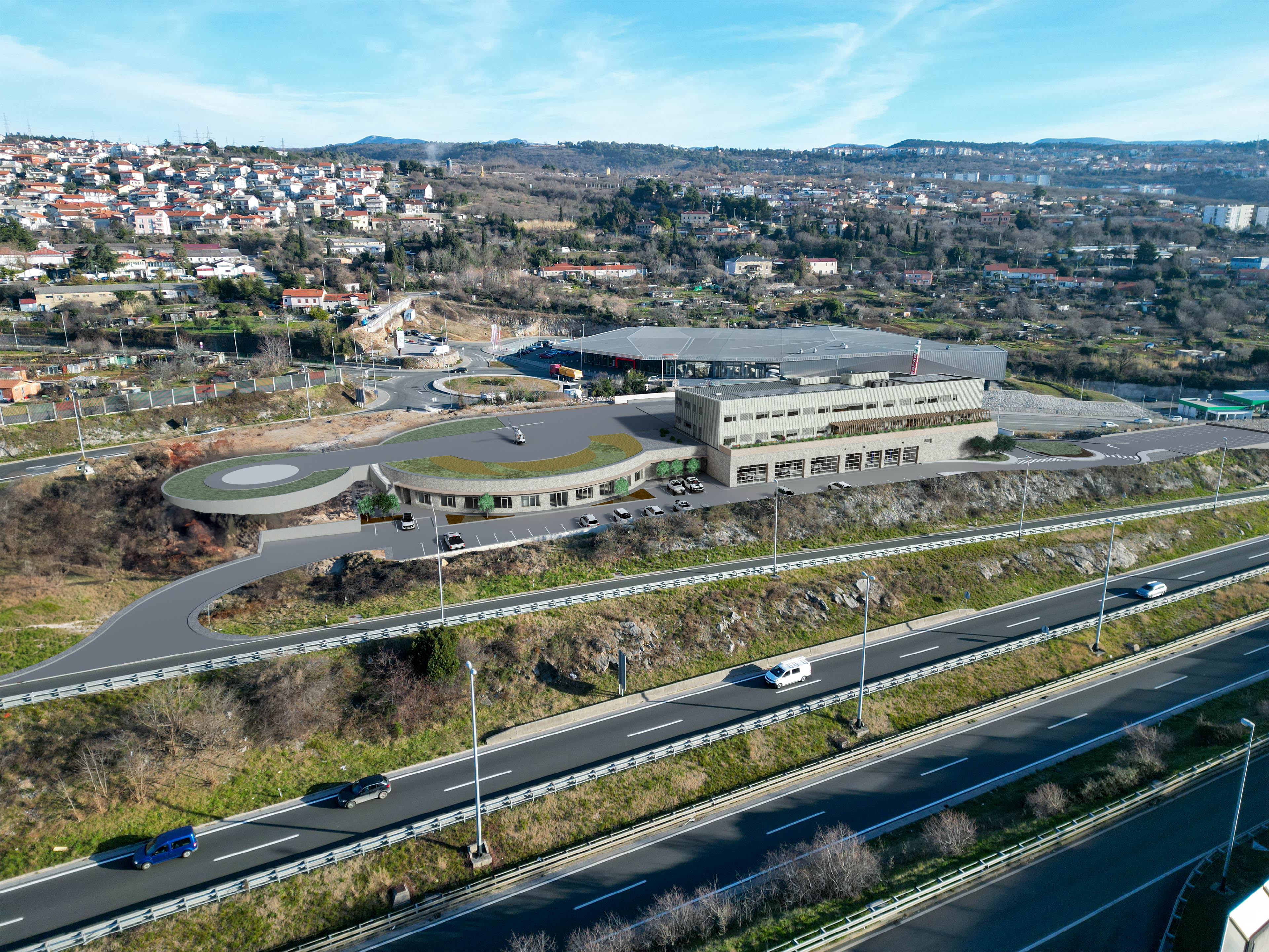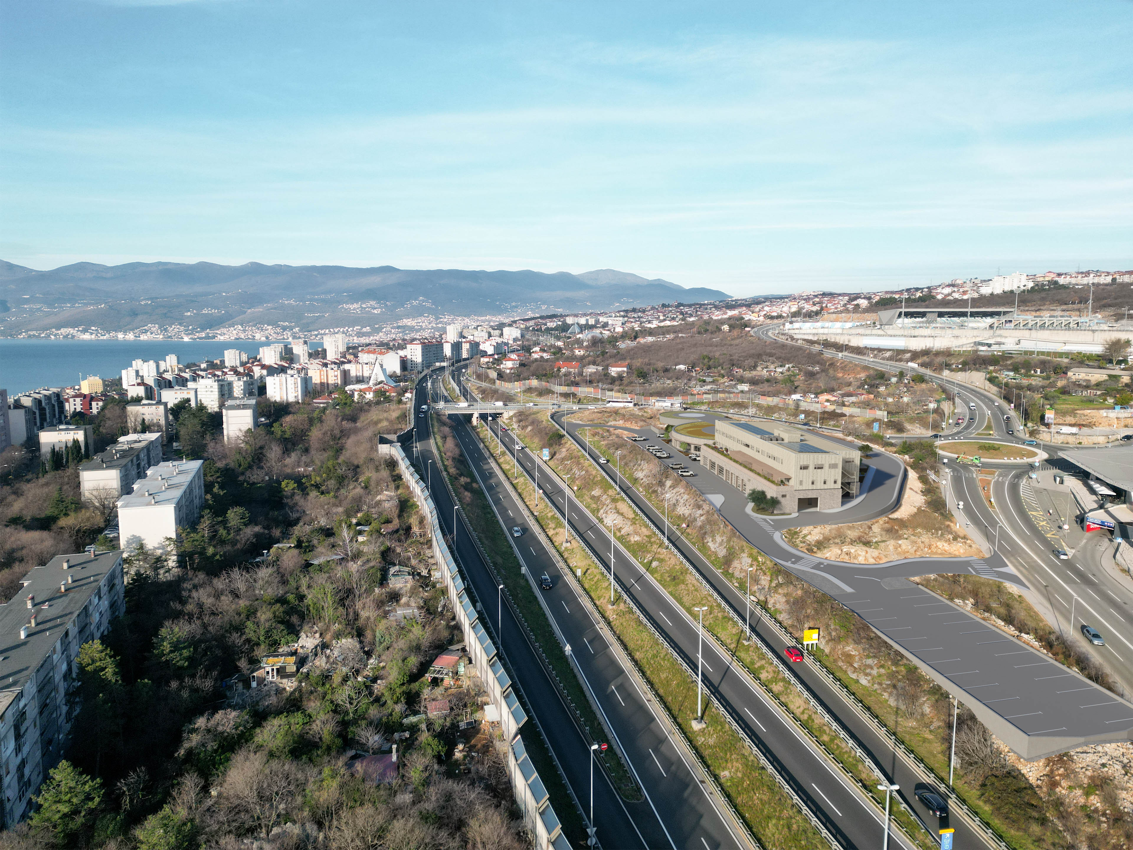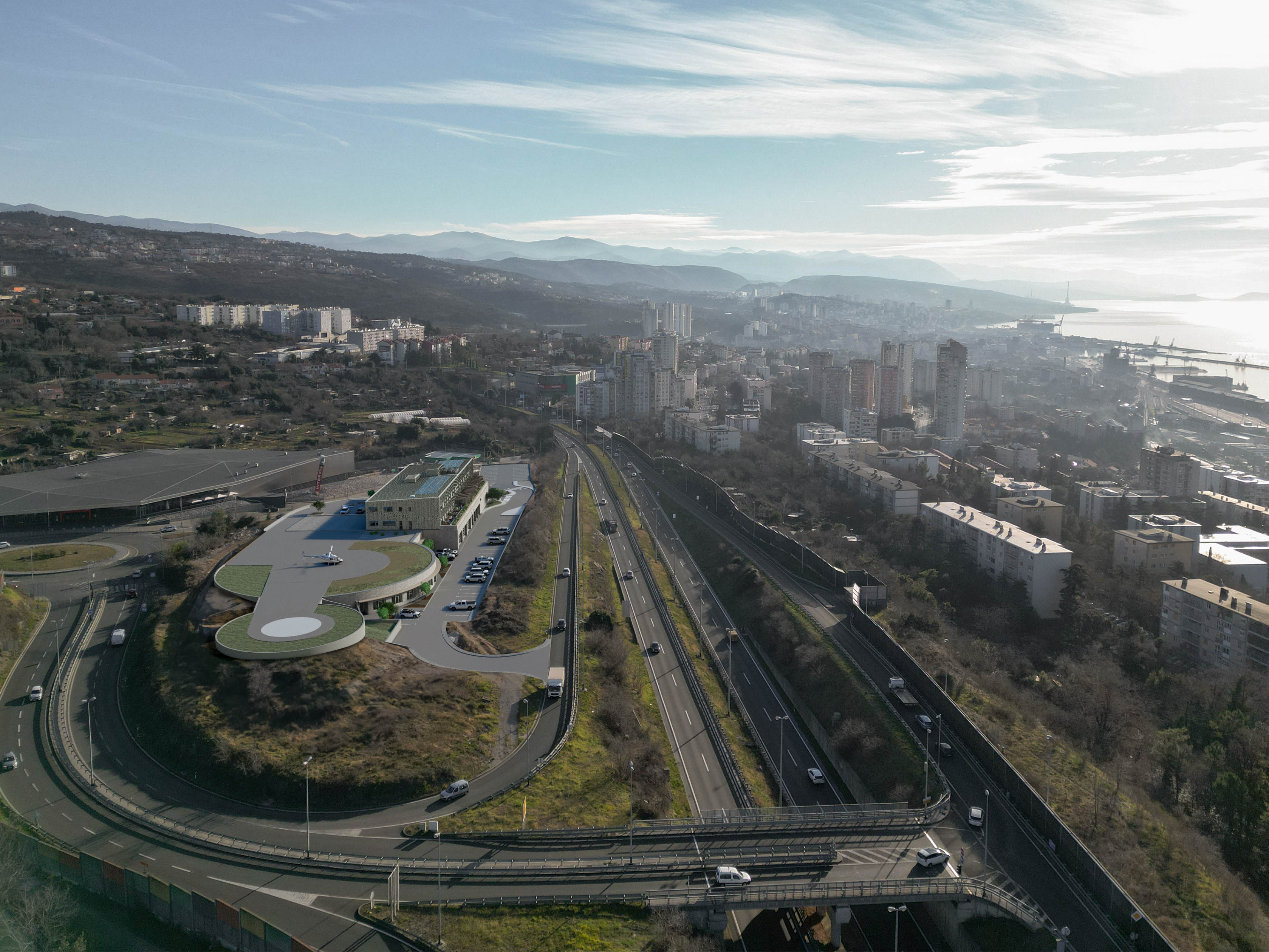 HGSS stanica nalazi se na etaži suterena ispod platoa helidroma koji definira polukružnu formu, a istočno od stanice i paralaleno s riječkom obilzanicom planiran je objekt Zavoda za hitnu medicinu. Na tri etaže Zavoda smješteni su garaže i radione, terenski timovi za Rijeku i riječki prsten, medicinske prijavno-dojavne jedinice, službe sanitetskog prijevoza, prostori za edukaciju zaposlenika kao i uprave ZZHM PGŽ.