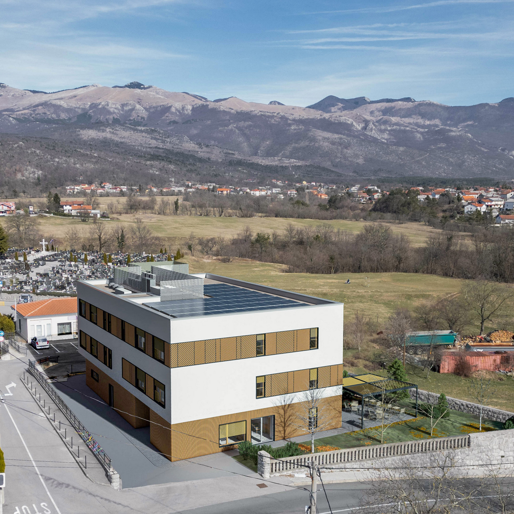 Na mjestu postojeće zgrade stare škole u Jelenju koja je izvan upotrebe već duže vrijeme, zapuštena i s vidljivim znakovima propadanja, planiran je novi dnevni centar za starije osobe – I dalje zajedno 65+. Program dnevnog centra proteže se kroz tri etaže te na vanjskoj natkrivenoj terasi s južne strane zgrade okruženoj zelenilom.